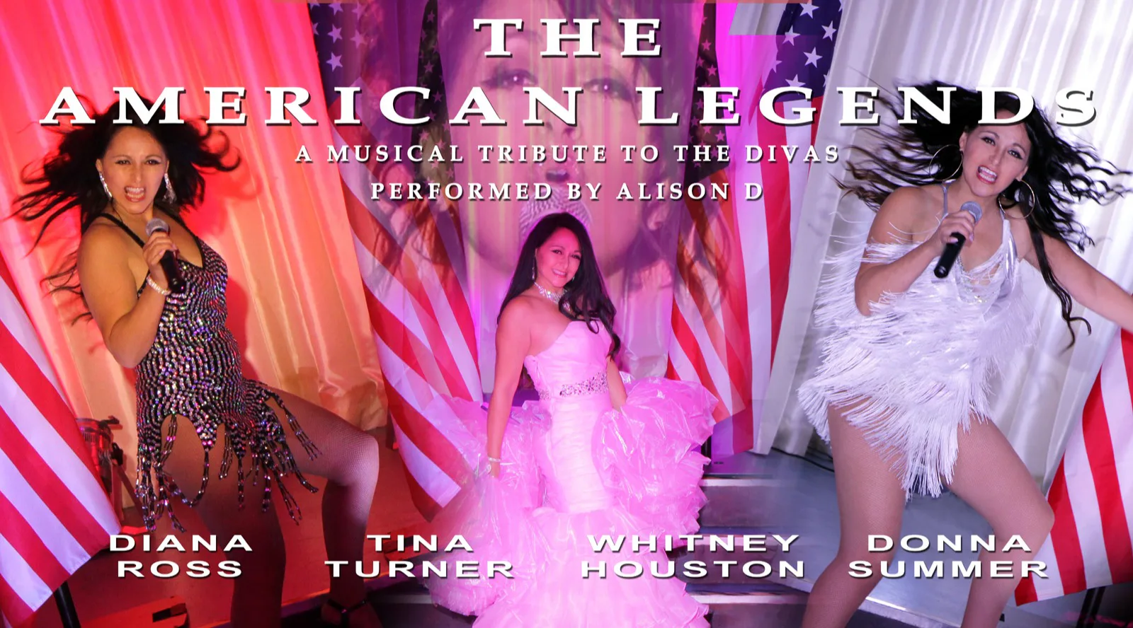 The American Legends is a dazzling, high-energy tribute show celebrating five of the most iconic female artists of all time: Diana Ross, Tina Turner, Whitney Houston, Cher, and Donna Summer. This electrifying, fully produced show delivers a world-class experience on a grand scale. The show is fully self-contained, featuring a state-of-the-art PA system, adaptable for venues of 50 to 500+ guests. Staging and backstage wardrobe facilities can also be provided if required. A sound engineer/lighting technician is present at every performance and is always willing to offer technical advice and assistance regarding any aspect of the show if required. Whether you‘re planning a special celebration, corporate event, or any other occasion, The American Legends guarantees an unparalleled night of glitz, glamour, and show-stopping entertainment.The American Legends is a dazzling, high-energy tribute show celebrating five of the most iconic female artists of all time: Diana Ross, Tina Turner, Whitney Houston, Cher, and Donna Summer. This electrifying, fully produced show delivers a world-class experience on a grand scale. The show is fully self-contained, featuring a state-of-the-art PA system, adaptable for venues of 50 to 500+ guests. Staging and backstage wardrobe facilities can also be provided if required. A sound engineer/lighting technician is present at every performance and is always willing to offer technical advice and assistance regarding any aspect of the show if required. Whether you‘re planning a special celebration, corporate event, or any other occasion, The American Legends guarantees an unparalleled night of glitz, glamour, and show-stopping entertainment.